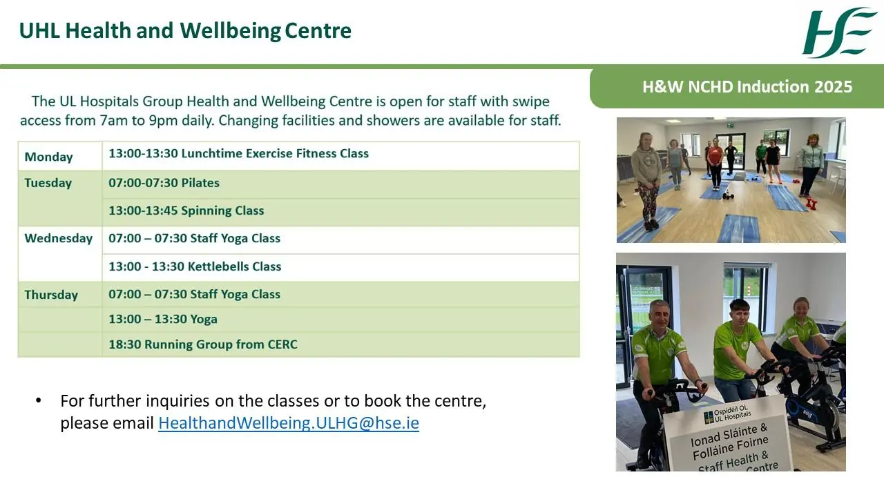 dovile.lee on 22/07/2025Health and Wellbeing Schedule If you have queries please contact healthandwellbeing.ulhg@hse.ie d dovile.lee